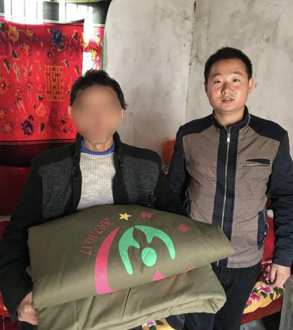 薛山给当时的贫困户送爱心棉被